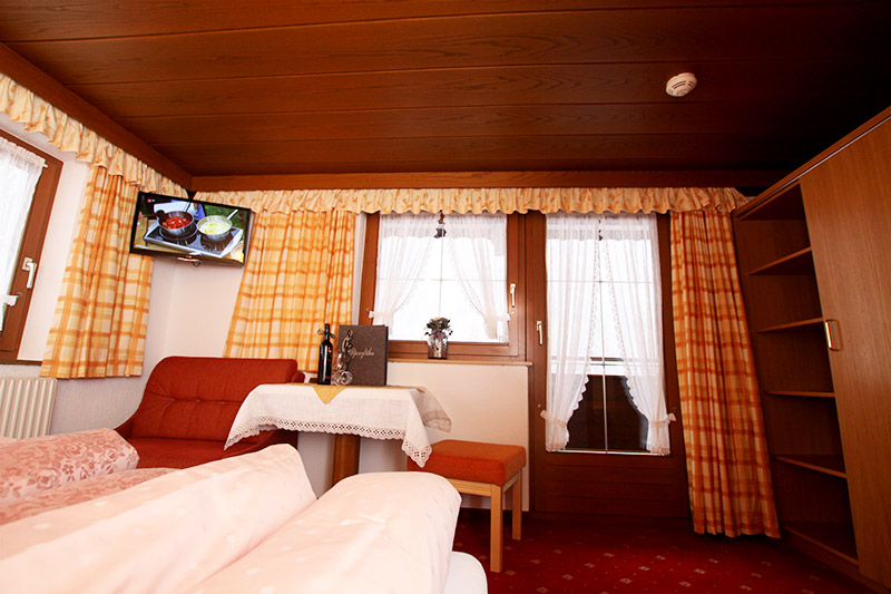 In unserem Haus Alpenglühen in Tirol stehen Ihnen 5 Doppelzimmer, 1 Dreibettzimmer, 1 Einzelzimmer und 1 Appartement für 2–4 Personen zur Verfügung.